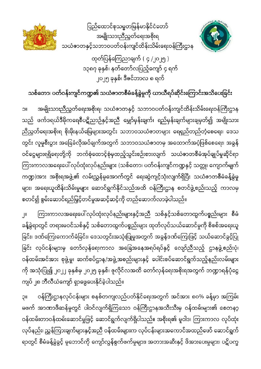 ပြစ်ဒဏ်ကျခံနေရသည့် အကျဉ်းသား/သူ သူ ၃၀၁၅ ဦးနှင့် နိုင်ငံခြားသား အကျဉ်းသား/သူ ၉၈ ဦးတို့ကို ပြစ်ဒဏ်မှ လွတ်ငြိမ်းခွင့်ပြုလိုက်ကြောင်း စစ်ကောင်စီအတွင်းရေးမှူး ဒုဗိုလ်ချုပ်ကြီး အောင်လင်းဒွေးက အမိန့်အမှတ် ၂၈/၁၃၊ ၂၉/၂၃၊ ဧပြီလ ၁၇ ရက် မြန်မာနှစ်ဆန်း ၁ ရက်နေ့ ရက်စွဲဖြင့် လွတ်ငြိမ်းခွင့် ထုတ်ပြန်ကြေညာလိုက်ပါသည်။