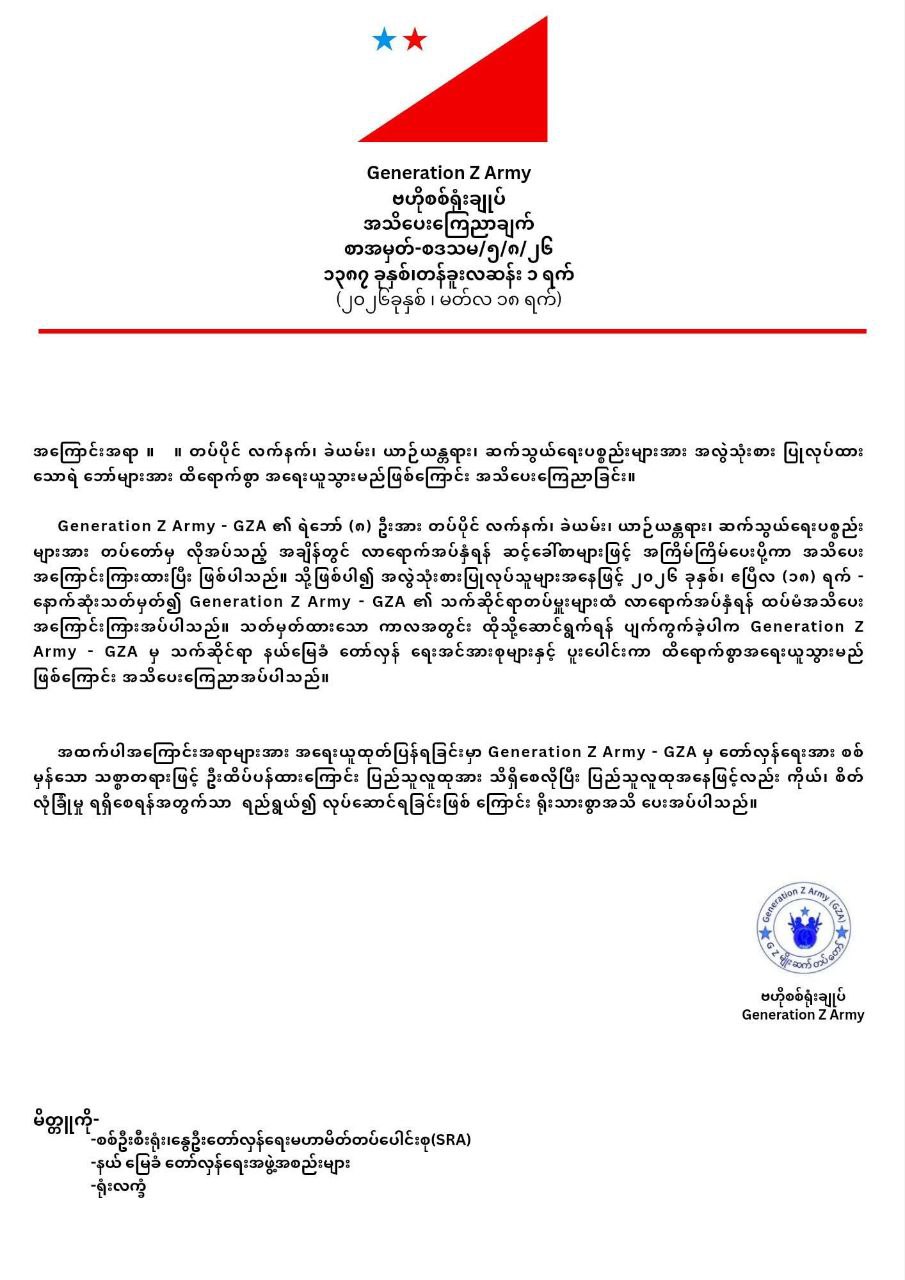အခုအခါ ဒေသအများအပြားမှာ မုန်တိုင်းအရှိန်ကြောင့် ရေကြီးရေလျှံတာတွေ ဖြစ်ပေါ်နေပြီး ပြည်သူတွေဟာ ရေဘေးဒဏ်ကို ကြုံတွေ့ခံစားနေရချိန် တဖက်မှာလဲ စစ်ကောင်စီရဲ့ လေကြောင်းနဲ့ လက်နက်ကြီးတိုက်ခိုက်တဲ့ဒဏ်တွေကို ခံစားနေရတယ်လို့ သိရပါတယ်။