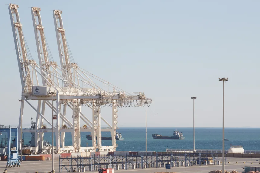 ပါကစ္စတန်နိုင်ငံ၏ ဂွါဒါ (Gwadar) ဆိပ်ကမ်းကို ၂၀၂၃ ခုနှစ်တွင် ဤနေရာ၌ မြင်တွေ့ရပြီး ၎င်းသည် တရုတ်နိုင်ငံ၏ ရပ်ဝန်းနှင့်လမ်းမ ပဏာမခြေလှမ်း (Belt and Road Initiative) အောက်ရှိ အခြေခံအဆောက်အအုံ ငွေကြေးထောက်ပံ့မှု စီမံချက်၏ တစ်စိတ်တစ်ပိုင်းဖြစ်သည်။(Tang Binhui/Xinhua/SIPA ၏ ဓာတ်ပုံ)