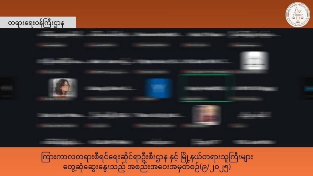 နောက်ပြီး အခုကာလ တော်လှန်ရေးနယ်မြေတွေမှာ လုံခြုံရေးခြိမ်းခြောက်တာတွေ ကြုံတွေ့နေရတဲ့ အခြေအနေတွေကြောင့် တရားရုံးတွေအနေနဲ့ အမှုတွဲနဲ့ စာရွင်စာတမ်းတွေအပါအဝင် လုံခြုံရေးဂရုပြုရမယ့် ကိစ္စရပ်တွေအားလုံး စနစ်တကျထားရှိဖို့ သူက ဆက်ပြောပါတယ်။