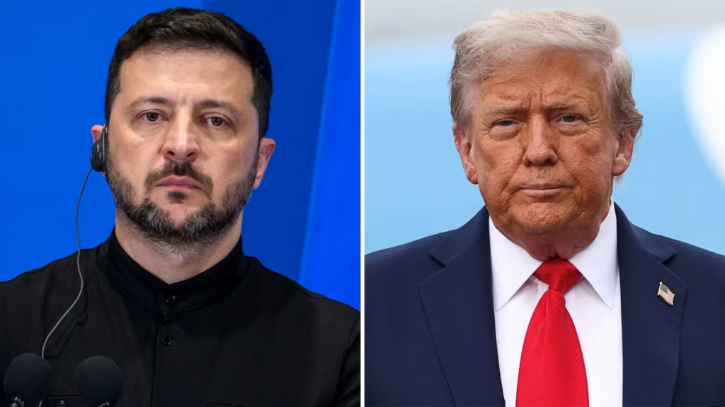 တွေ့ဆုံပွဲ။ ယူကရိန်းသမ္မတ ဗော်လိုဒီမာ ဇလန်းစကီးသည် လန်ဒန်မြို့တွင် ဥရောပ ခေါင်းဆောင် အရေးပါပုဂ္ဂိုလ်များဖြစ်ကြသည့် ဗြိတိန်ဝန်ကြီးချုပ် ကီယာစတာမာ (Keir Starmer) ၊ ပြင်သစ်သမ္မတ အီမန်နျူရယ်မက်ခရွန် (Emmanuel Macron) နှင့် ဂျာမနီဝန်ကြီးချုပ် ဖရက်ဒရစ်ချ် မာ့ဇ်(Friedrich Merz) တို့နှင့် တွေ့ဆုံနေပါသည်။