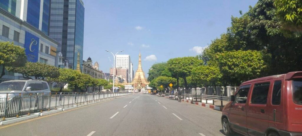 အရင်က လူသွားလူလာများပြားတဲ့ ရန်ကုန်မြို့လယ်မှာ ဒီကနေ့မှာတော့ အသွားအလာနည်းပါးနေပြီး ယာဉ်လမ်းကြောတွေ ရှင်းလင်းနေတယ်လို့ သိရပါတယ်။