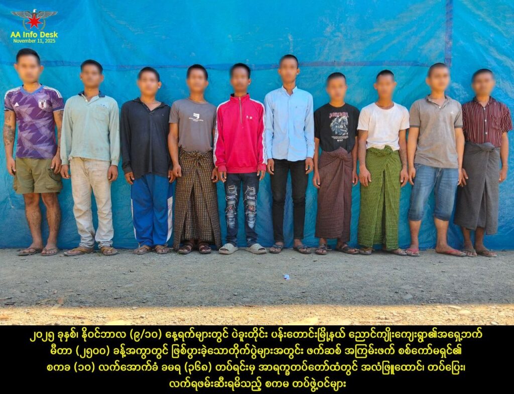 နတ်ရေကန်ဗျူဟာကုန်းအပါအဝင် နေ့တိုင်းလိုလို ပြင်းထန်နေတဲ့ တိုက်ပွဲတွေကနေ ထွက်ပြေးလာတဲ့ စစ်ကော်မရှင်တပ်ဖွဲ့ဝင်တွေကို ဖမ်းဆီးရမိခဲ့တယ်လို့ AA ရဲ့ ဒီကနေ့မှာ ထုတ်ပြန်ထားချက်အရ သိရပါတယ်။