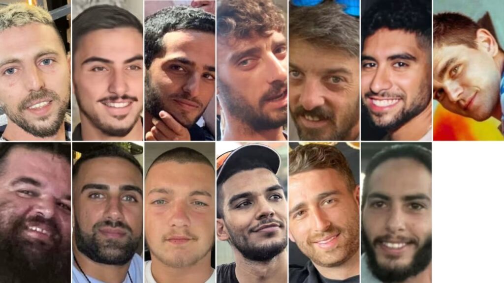 Elkana Bohbot, ၃၆ နှစ် ၊ Rom Braslavski, ၂၁ နှစ်၊ Nimrod Cohen, ၂၁ နှစ်၊ David Cunio, ၃၅ နှစ်၊ Ariel Cunio, ၂၈ နှစ်၊ Evyatar David, ၂၄ နှစ်၊ Maxim Herkin, ၃၇ နှစ်၊ Eitan Horn, ၃၉ နှစ်၊ Segev Kalfon, ၂၇ နှစ်၊ Bar Kupershtein, ၂၃ နှစ်၊ Yosef-Chaim Ohana, ၂၅ နှစ်၊ Avinatan Or, ၃၂ နှစ်၊ Matan Zangauker, ၂၅ နှစ် တို့ဖြစ်ကြပါတယ်။