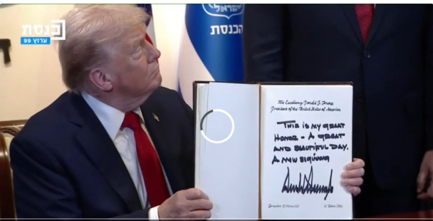 အမေရိကန်သမ္မတ ဒေါ်နယ်လ် ထရန့်ပ် (Donald Trump) သည် ဂျေရုဆလင်ရှိ ပါလီမန် အဆောက်အအုံကို ဖြတ်လျှောက်လာစဉ် သတင်းထောက်တစ်ဦးက စစ်ပွဲသည် ယခုအခါ “တရားဝင် ပြီးဆုံးပြီလား” ဟု မေးမြန်းခဲ့သည်။