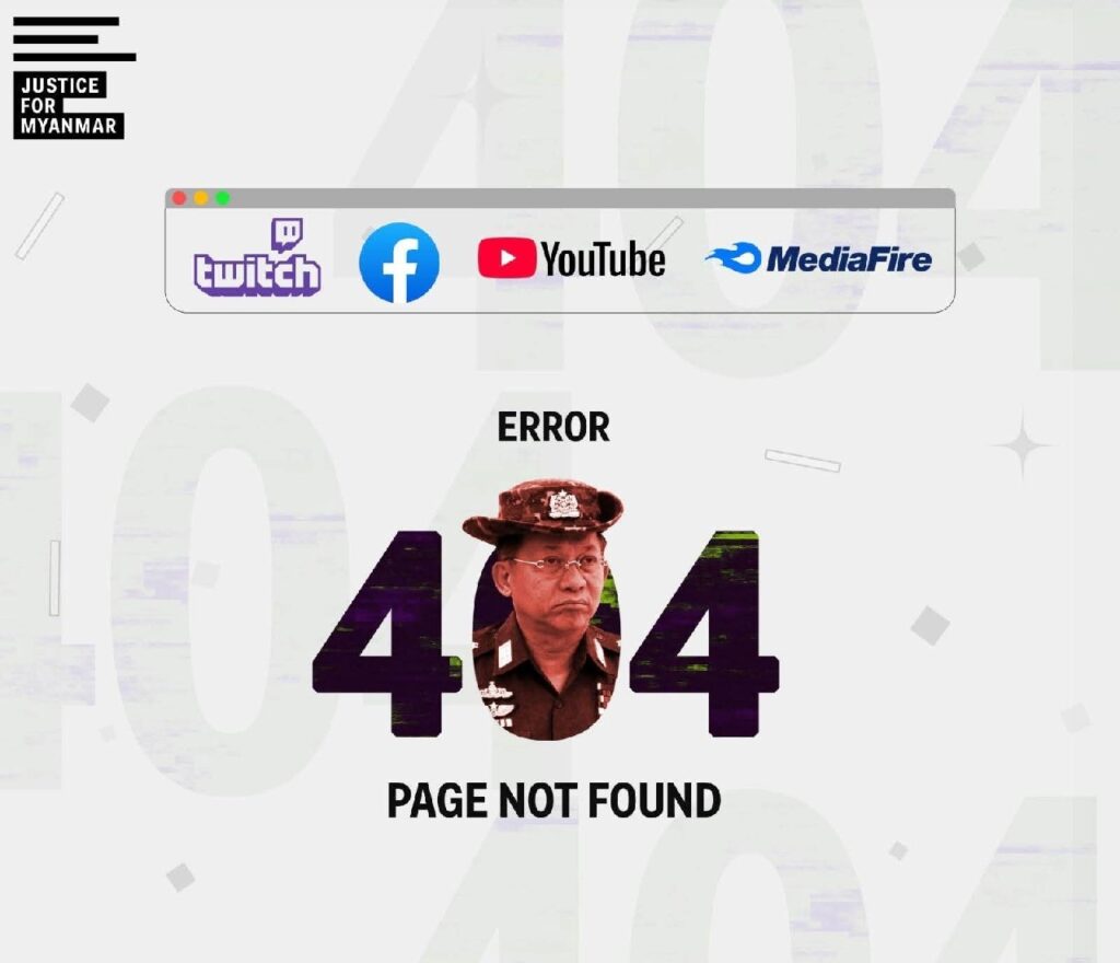 Twitch၊ Facebook၊ YouTube နဲ့ MediaFire တို့ကနေ အကြမ်းဖက်စစ်အုပ်စုရဲ့ ဝါဒမှိုင်းဖြန့်အကောင့်တွေ ဖယ်ရှားခံရတယ်လို့ Justice for Myanmar ရဲ့ ဒီကနေ့မှာ ထုတ်ပြန်ထားချက်အရ သိရပါတယ်။
