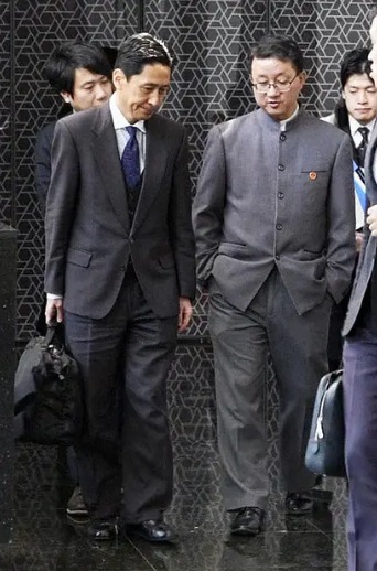 ၁၈ ရက်နေ့ ဆွေးနွေးပွဲကို နိုင်ငံခြားရေးဝန်ကြီးဌာနမှ အာရှနှင့် သမုဒ္ဒရာပိုင်းဆိုင်ရာဗျူရိုအကြီးအကဲ ကာနာအိ မဆအာကိ (Masaki Kanai) နှင့် တရုတ်နိုင်ငံခြားရေးဝန်ကြီးဌာနမှ အာရှရေးရာဗျူရိုအကြီးအကဲ လူကျင်းစုန်း (Liu Jinsong) တို့အကြား ပြုလုပ်ခဲ့သည်။ တွေ့ဆုံဆွေးနွေးပွဲအပြီး တရုတ်နိုင်ငံခြားရေးဝန်ကြီးဌာန အဆောက်အအုံမှ အရာရှိနှစ်ဦး ထွက်လာချိန်တွင် လူသည် ရင်ကိုကော့ပြီး လက်နှစ်ဖက်ကို အိတ်ကပ်ထဲ ထိုးထည့်ကာ လမ်းလျှောက်နေခဲ့ပြီး ၎င်း၏ဘေးတွင် စကားပြန်၏ စကားကို နားထောင်နေသော မစ္စတာ ခါနိုင်း မှာ အနည်းငယ် ခေါင်းငုံ့ထားပုံ ပေါ်သည်။