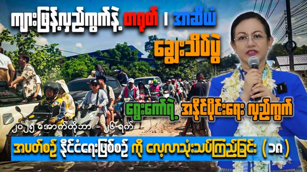 ဒီအပတ်ခေတ်မျက်လုံးရဲ့ တနင်္ဂနွေနေ့အပတ်စဥ် နိုင်ငံရေးဖြစ်စဥ်များ ဆွေးနွေးပွဲမှာ စစ်အုပ်စုက သူတို့လက်အောက်ခံ BGF (KNA)ထိန်းချုပ်ထားတဲ့ KK Park ကိုဝင်စီးခဲ့ပြီး တရုတ်ဖိအားကို လိုက်နာခဲ့သလို လာမဲ့အာဆီယံ အစည်းအဝေးမှာ တက်လာတဲ့ အမေရိကန်သမတနဲ့ တရုတ်တို့ကို ကျားဖြန့်နှိမ်နင်းပြမှုနဲ့ချွေးသိပ် ဖို့ဆောင်ရွက်ခဲ့သလို စစ်အုပ်စုတဖက်သတ်လုပ်မဲ့ ရွေးကောက်ပွဲကို ဦးစီးမဲ့ ရွေးကော်ကလည်း ကြံခိုင်ဖြိုးပါတီနဲ့ ယှဥ်ပြိုင်မဲ့ နိုင်ငံရေးပါတီတွေကို အကြောင်းပြချက် မျိုးစုံနဲ့ နှိမ်နင်းလာတာကို မျက်ဝါးထင်ထင်တွေ့လာရတာကိုဒီတနင်္ဂနွေနေ့ မြန်မာစံတော်ချိန်ည ၇နာရီခွဲ မှာ Era’s Eye YouTube Channelကနေ ဦးထွန်းအောင်ကျော်နဲ့ ဦးထွန်းကြည်တို့က Live ဆွေးနွေးသွားကြမှာဖြစ်ပါတယ်။