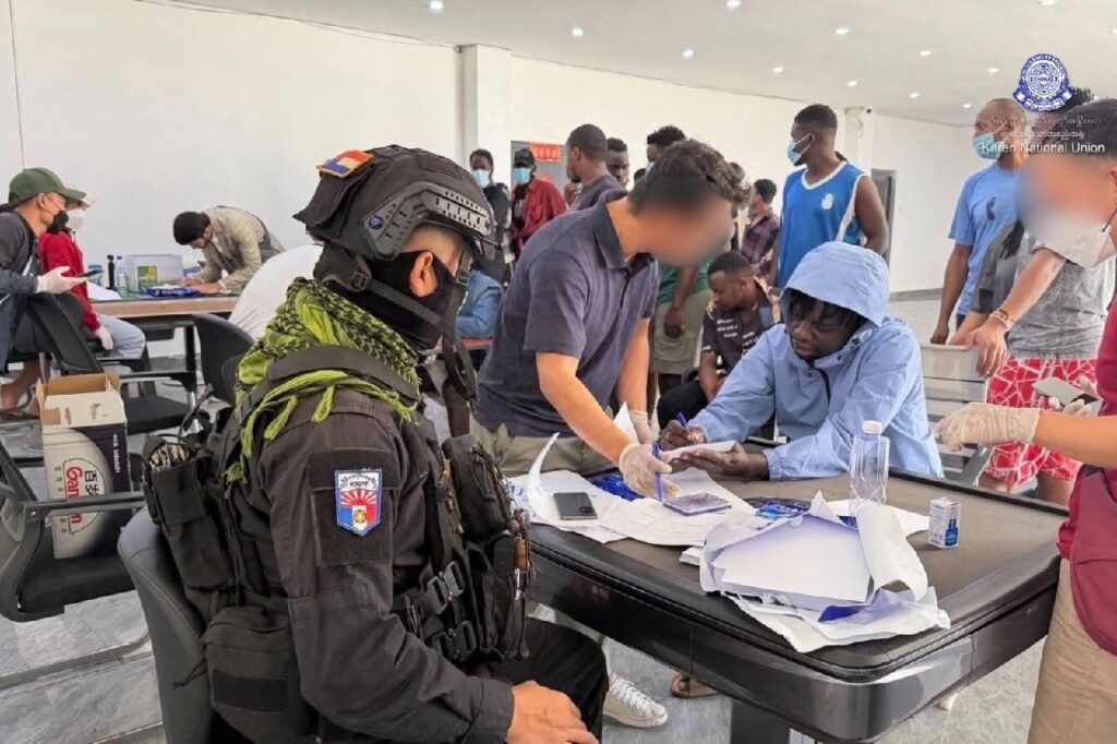 အဲ့ဒီနေရာကနေ တရုတ်လူမျိုး အများဆုံးပါဝင်တဲ့ နိုင်ငံပေါင်း (၈)နိုင်ငံက နိုင်ငံခြားသား (၇၀၀)ကျော်ကို ဖော်ထုတ်နိုင်ခဲ့ပြီး ကျားဖြန့်အလုပ်သမားအချို့ဟာ လူသေစေနိုင်တဲ့ လက်နက်တွေ ကိုင်ဆောင်တာတွေ ရှိတဲ့အတွက် ကျားဖြန့်စင်တာက အလုပ်သမားတွေရဲ့ အသက်အန္တရာယ်အတွက် အလွန်စိုးရိမ်ထိတ်လန့်ဖွယ်ဖြစ်တယ်လို့ KNU က ပြောဆိုထားပါတယ်။