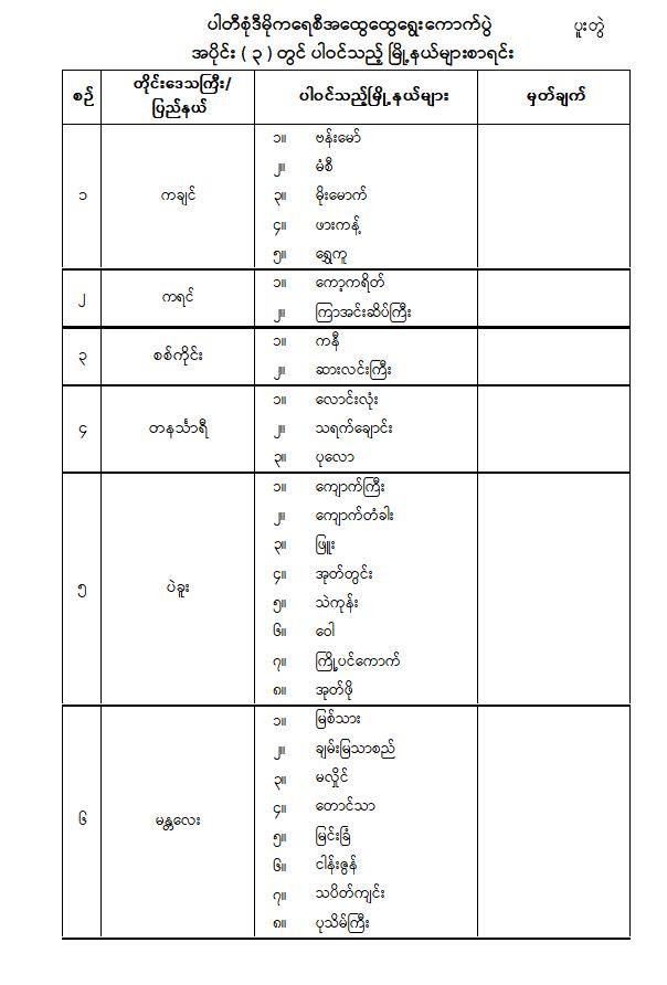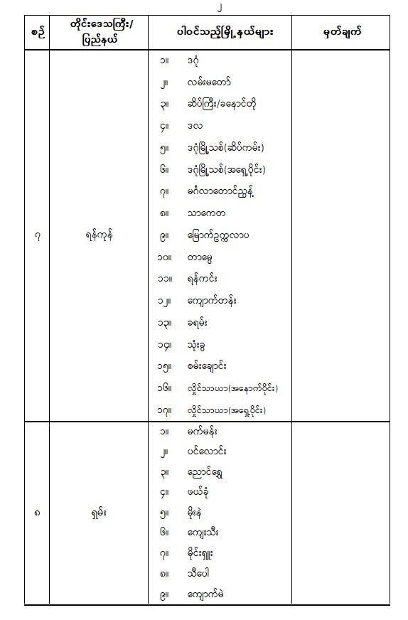 ရွေးကောက်ပွဲအပိုင်း(၃)ကျင်းပမယ့် နေ့ရက်နဲ့ မြို့နယ်တွေစာရင်း စစ်တပ်ထုတ်ပြန်