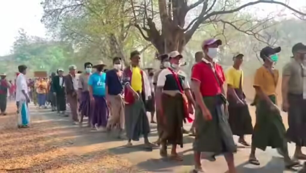 “ NUG ညွှန်ကြားချက်နဲ့ဆိုပြီး ရေနံမှော်ဒေသကို အင်အားရာချီသုံးပြီး ဝင်လာတာ။ ဒါ့ကြောင့် မနေ့ကလဲ ဒေသခံတွေ ဆန္ဒပြကြတယ်။ ဒီနေ့လဲ ပခုက္ကူခရိုင်တနေရာမှာ လမ်းပေါ်ထွက် ဆန္ဒပြနေကြတယ်” လို့ ဒေသခံတဦးက ဆိုပါတယ်။