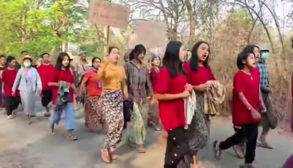 ဆန္ဒပြရာမှာ “ မကွေးဖက်ဒရယ်အစိုးရ တို့အစိုးရ” ၊ စစ်အနိုင်တိုက်ရေး(ဒို့အရေး)၊ မိက်ဖက်ပဋိပက္ခ အလိုမရှိ၊ တော်လှန်ရေးသမားအချင်းချင်းညီညွတ်ရေး တို့အရေး၊ ငါတို့ဒေသ ငါတို့ပိုင်တယ်” စတဲ့ ဆောင်ပုဒ်တွေ ကိုင်စွဲပြီး ဆန္ဒပြခဲ့ကြတာပါ။