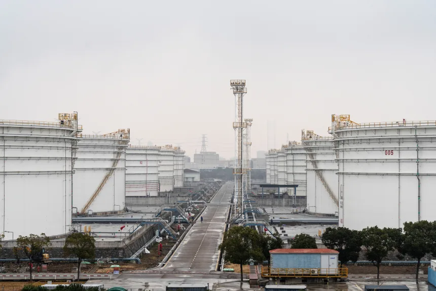 ၂၀၂၆ ခုနှစ်၊ ဇန်နဝါရီလ ၅ ရက်နေ့တွင် တရုတ်နိုင်ငံ၊ နင်ဘိုအနီးရှိ China Petroleum & Chemical Corp. (Sinopec) စက်ရုံရှိ ရေနံသိုလှောင်ကန်များ။ Qilai Shen/Bloomberg/Getty Images(ပုံ)