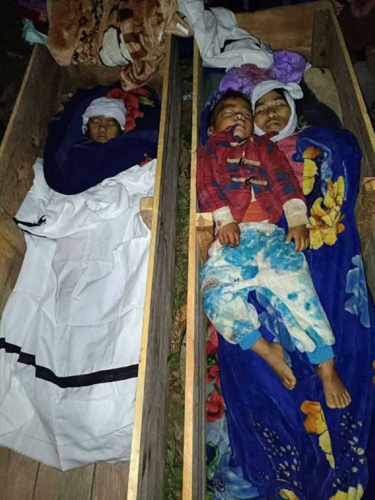 “ မနေ့က ည (၁၂)နာရီကျော်လောက် Halta ရွာနဲ့ Haiphai ရွာကို စစ်တပ်က လေကြောင်းဗုံးကြဲတာ။ လူထိခိုက်သေဆုံးတာက Halta ရွာမှာ၊ မိသားစုဝင် (၄)ဦးမှာ (၃)ဦး ပွဲချင်းပြီး သေဆုံးသွားတာ” လို့ ဆိုပါတယ်။