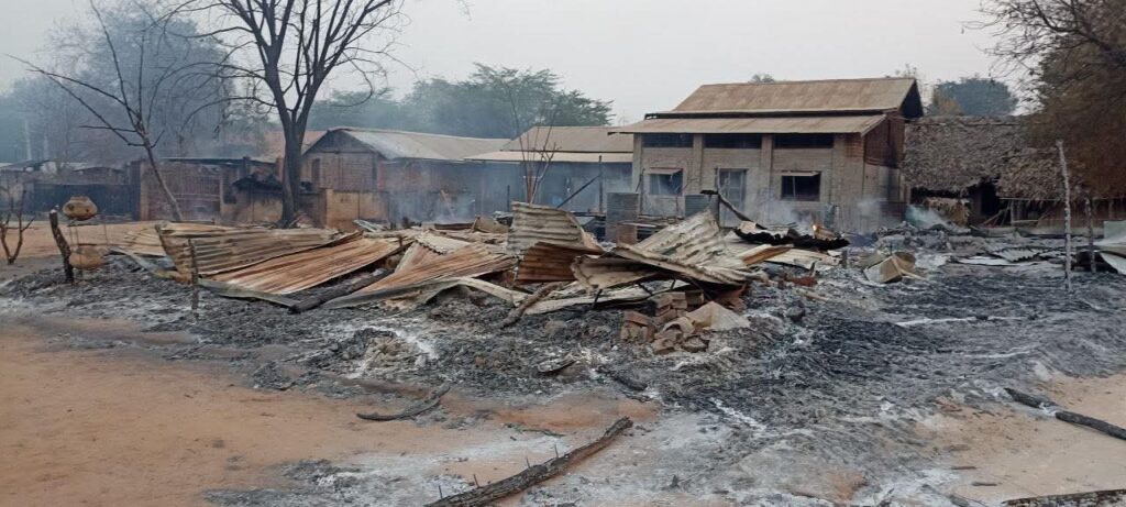 မနေ့က နေ့လယ် (၂)နာရီကျော်အချိန်ကစပြီး အကြမ်းဖက်စစ်တပ်အပါအဝင် ပျူစောထီးတွေနဲ့ ဒလန်တွေ ဦးဆောင်ကာ စိတ္တိန်းမြောက်ဘက်ရွာကနေ မီးရှို့ခဲ့ကြတာလို့ ဖော်ပြထားပါတယ်။