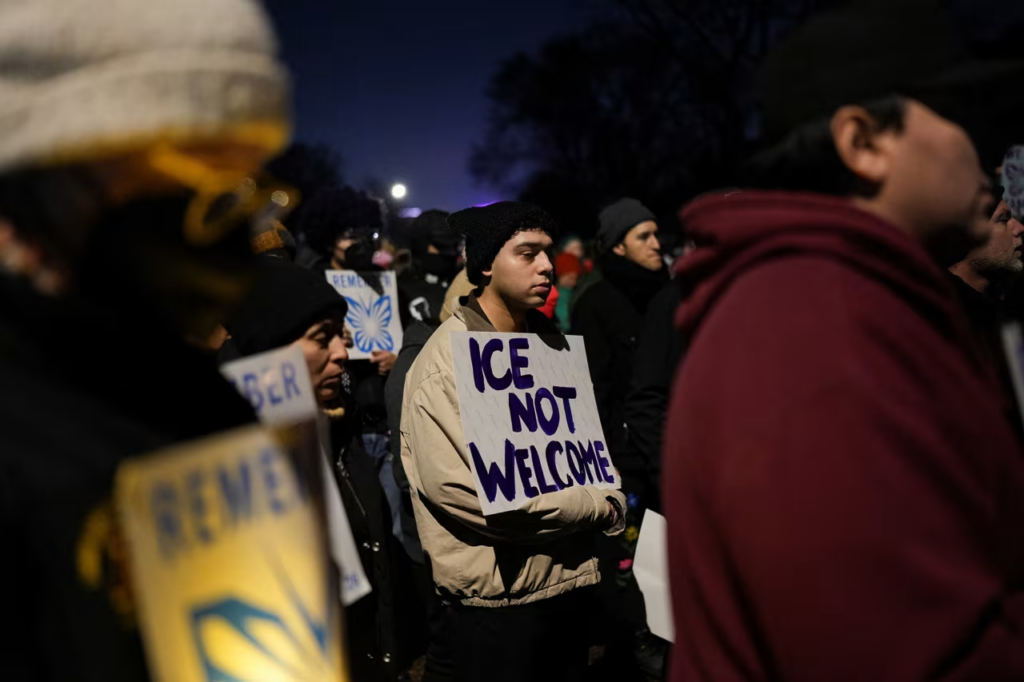 ဗုဒ္ဓဟူးနေ့ညက ပြုလုပ်ခဲ့သည့် ဆုတောင်းပွဲသို့ နောက်ခံလူတန်းစား ပေါင်းစုံမှ ဆန္ဒပြသူ ရာပေါင်းများစွာ တက်ရောက်ခဲ့ကြပြီး၊ သူမ၏ SUV ကားအတွင်း၌ ပစ်သတ်ခံခဲ့ရသည့် Renee Good အတွက် ဝမ်းနည်းခြင်း အထိမ်းအမှတ် ပြုလုပ်ခဲ့ကြသည်။ အများစုမှာ “ ICE ကို လက်မခံ” သို့မဟုတ် Good သေဆုံးခဲ့သည့်နေ့စွဲဖြစ်သော “ 1.7.26 ကို သတိရပါ” ဟု ရေးသားထားသည့် ဆိုင်းဘုတ်များကို ကိုင်ဆောင်ထားကြသည်။