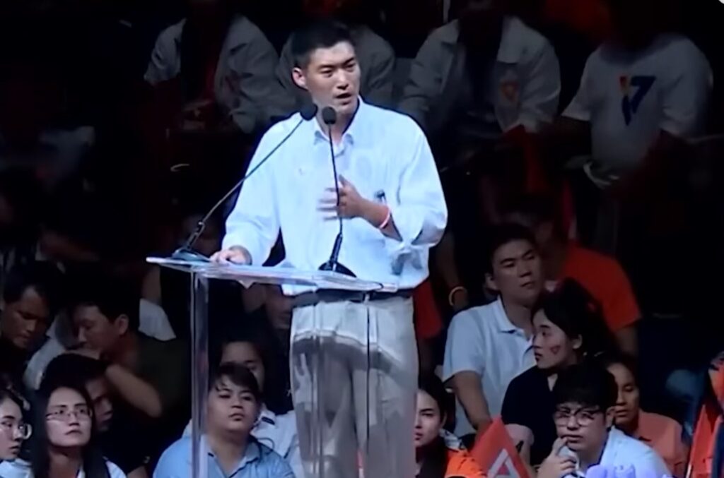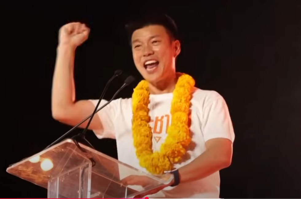 လက်ရှိ ပြည်သူ့ပါတီ၏ ခေါင်းဆောင်မှာ နတ်သဖုန်း ရွန်ပန်ယာဝပ် (Natthaphong Ruengpanyawut)မဲဆွယ်နေစဥ်။(ပုံ)