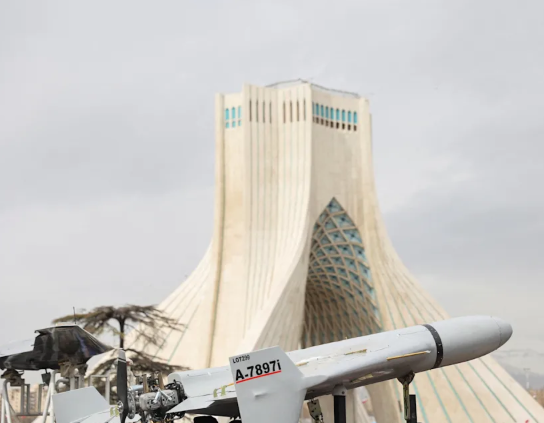 ဓာတ်ပုံအညွှန်း- ၂၀၂၆ ခုနှစ်၊ ဖေဖော်ဝါရီလ ၁၁ ရက်နေ့က အီရန်နိုင်ငံ၊ တီဟီရန်မြို့တွင် ကျင်းပသည့် (၄၇) ကြိမ်မြောက် အစ္စလာမ္မစ်တော်လှန်ရေး အထိမ်းအမှတ်ပွဲတွင် ပြသထားသည့် Shahed ဒရုန်းတစ်စင်း။ အဆိုပါ ဒရုန်းများသည် အမေရိကန်အတွက် အခက်အခဲများ ဖြစ်ပေါ်စေခဲ့ပြီး ယူကရိန်းက ကူညီရန် ကမ်းလှမ်းထားသည်။