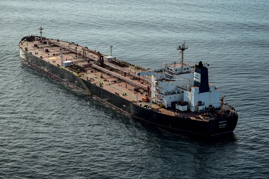 ရုရှား၏ “ အရိပ် ရေယာဉ်စု (Shadow fleet)” မှ Boracay ရေနံတင်သင်္ဘောကို ၂၀၂၅ ခုနှစ်၊ အောက်တိုဘာ ၁ ရက်နေ့က ပြင်သစ်ဆိပ်ကမ်း Saint-Nazaire ကမ်းလွန်တွင် တွေ့ရစဉ်။ (ဓာတ်ပုံ – Damien Meyer/AFP/Getty Images)