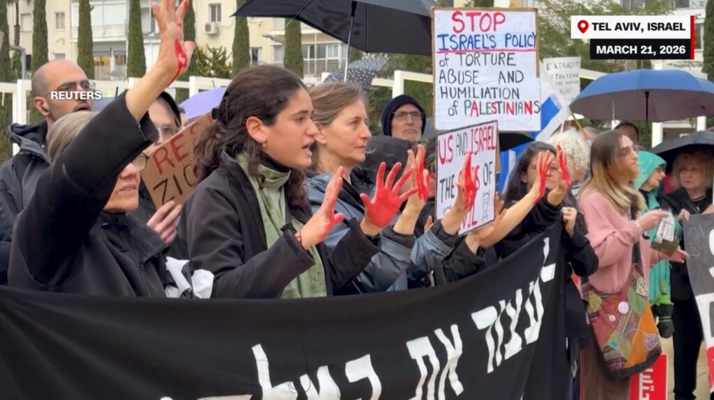အစ္စရေး – တဲလ်အဗစ်မြို့တွင် ဆန္ဒပြသူအချို့သည် ၎င်းတို့၏ လက်ဖဝါးများကို အနီရောင် ဆိုးထားကြပြီး အချို့ကမူ ဆိုင်းဘုတ်များကို ကိုင်ဆောင်ထားကြသည်။ ဆိုင်းဘုတ်ကြီးတစ်ခုတွင် “ စစ်ပွဲကို ရပ်တန့်လော့” ဟု ရေးသားထားပြီး နောက်တစ်ခုတွင် “ လက်နက်တင်ပို့မှု အခုချက်ချင်း ပိတ်ပင်လော့” ဟု ဖော်ပြထားသည်။ လူများသည် “ အမေရိကန်နှင့် အစ္စရေး = မကောင်းဆိုးဝါးဝင်ရိုးတန်း” နှင့် “ အစ္စရေး၏ ဖိနှိပ်မှုမှ ပါလက်စတိုင်းများကို မည်သူက ကာကွယ်ပေးမည်နည်း” အစရှိသည့် ကိုယ်တိုင်ရေး ဆောင်ပုဒ်အမျိုးမျိုးပါဝင်သော လက်ကိုင်ဆိုင်းဘုတ်များကိုလည်း ကိုင်ဆောင်ခဲ့ကြသည်။