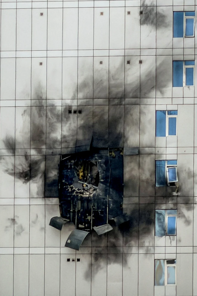 မတ်လ ၁ ရက်နေ့က အီရန်ဒရုန်းတိုက်ခိုက်မှုကြောင့် ပျက်စီးသွားသော ဘာရိန်းနိုင်ငံ၊ မနာမာမြို့ရှိ အဆောက်အအုံတစ်ခု။ Hamad I Mohammed/Reuters(ပုံ)