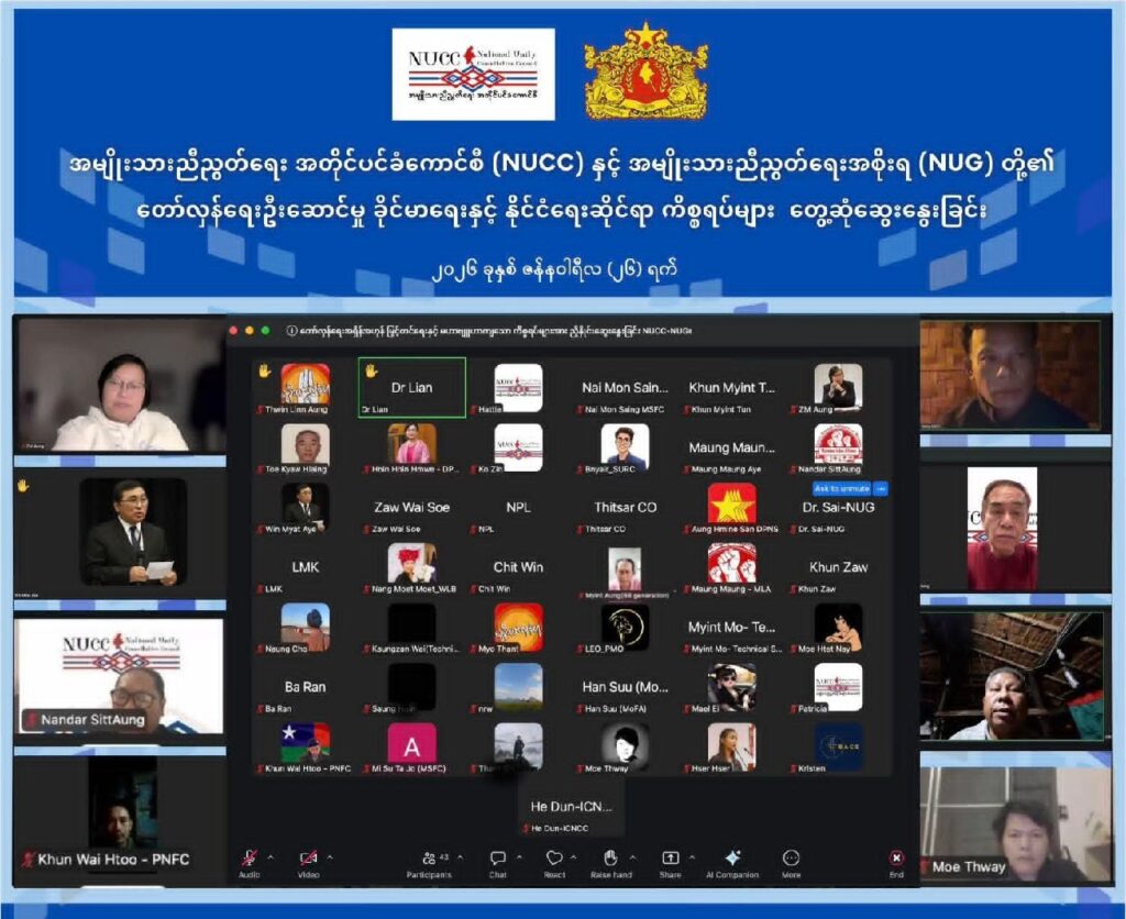 ဇန်နဝါရီလ (၂၅)ရက်နေ့က တော်လှန်ရေးဦးဆောင်မှု ခိုင်မာဖို့နဲ့ နိုင်ငံရေးဆိုင်ရာကိစ္စရပ်တွေနဲ့ပတ်သက်ပြီး NUCC နဲ့ NUG တို့ တွေ့ဆုံဆွေးနွေးခဲ့တယ်လို့ မနေ့က ထုတ်ပြန်ထားချက်အရ သိရပါတယ်။
