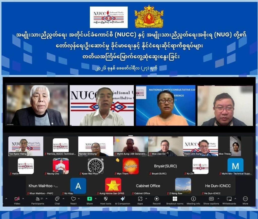 တော်လှန်ရေးဦးဆောင်မှု ခိုင်မာဖို့ NUG နဲ့ NUCC တို့ တတိယအကြိမ် ဆွေးနွေးအဖြေရှာ