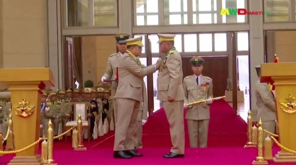 ရာထူးလွဲပြောင်းတာမှာ စစ်ခေါင်းဆောင် မင်းအောင်လှိုင်က ရဲဝင်းဦးကို တပ်ချုပ်အဆောင်အယောင်နဲ့ ရွှေဓါးလွှဲအပ်ပေးတာကို တွေ့ရပါတယ်။